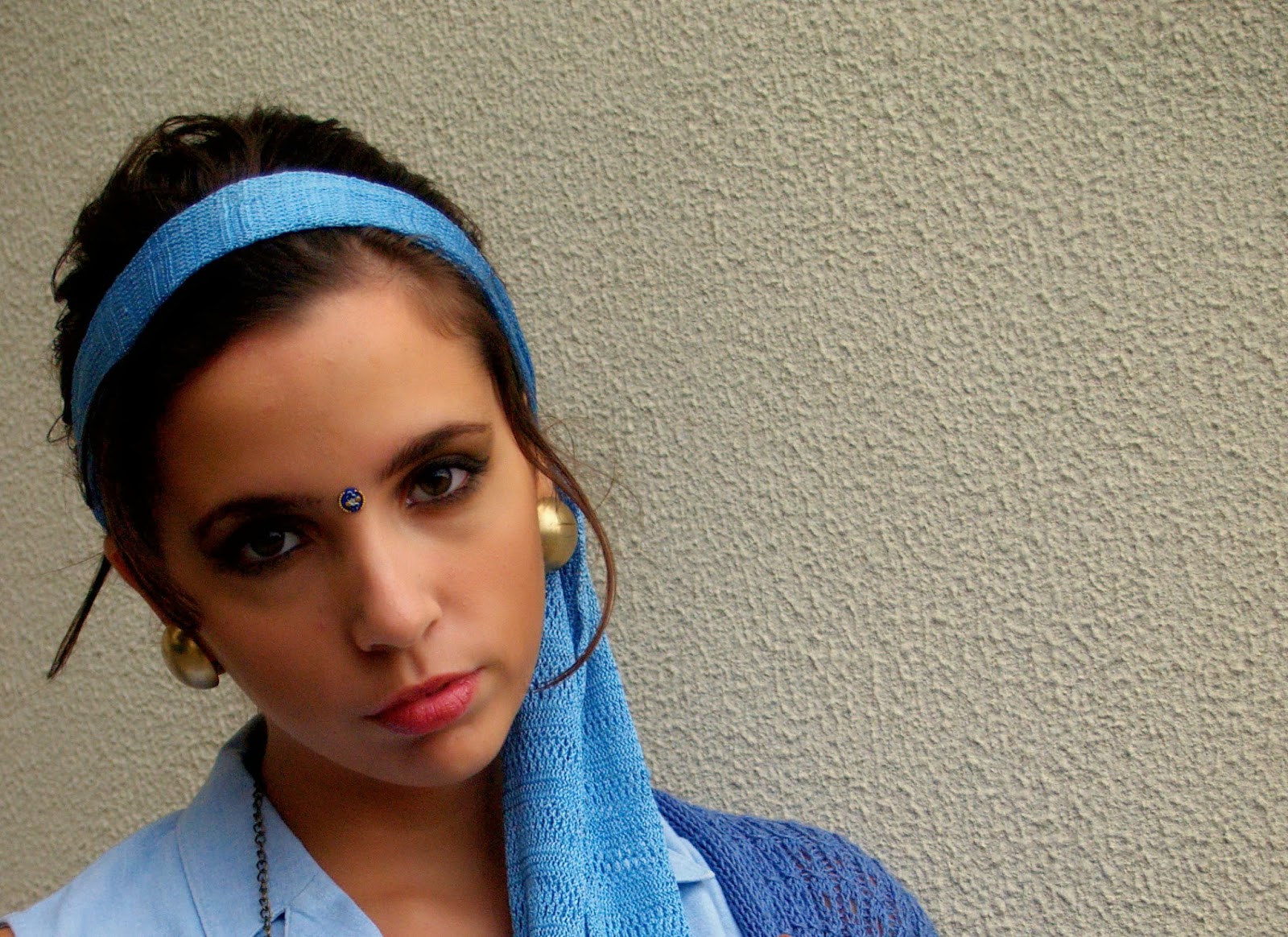 Decidi dar fazer um mix entre o casual e beleza e sensualidade de uma princesa de Agrabah. Daí ter vários acessórios em dourado, uns mais semelhantes aos usadas pela minha musa (brincos e colar) outros com referências ao filme (anel com tigre - Rajah) e uns óculos vintage. A clutch foi comprada numa feira de artesanato árabe e acho que encaixa na perfeição por todas as razões. De resto segui muito o princípio "keep it simple" e optei por umas jeans de cintura subida vintage com uma blusa de ganga, sapatilhas, lenço e casaco em perlé.