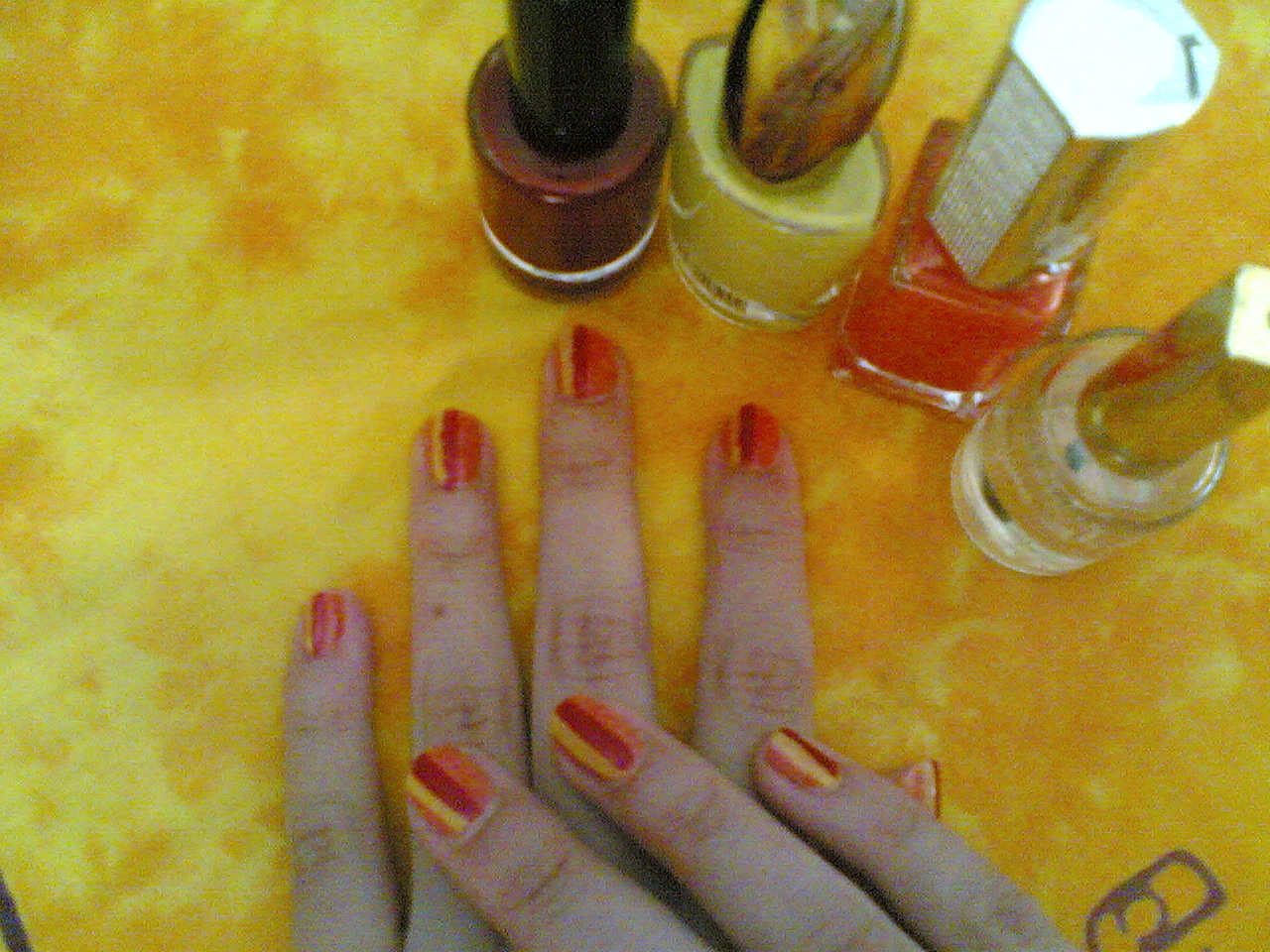 7. E colocamos na nossa unha tendo o cuidado de incluir nela a zona de junção das cores.